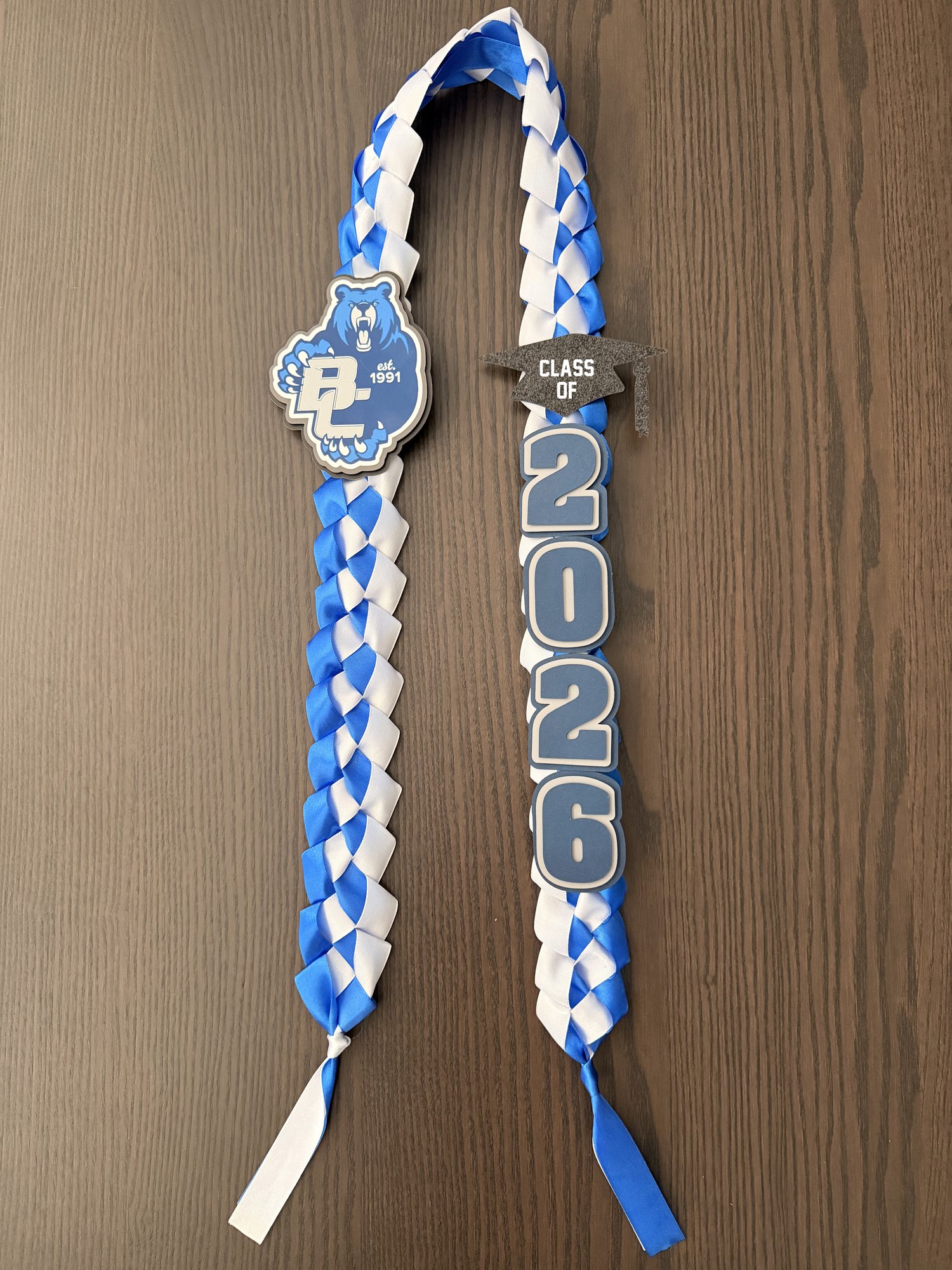 Each lei is carefully braided using high-quality satin ribbon and customized with your graduate’s details for a bold, personalized look.
